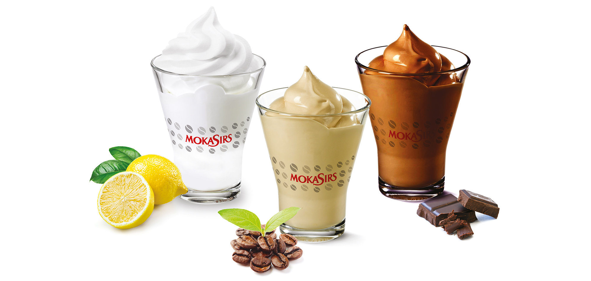 Le mousse fredde MokaSirs sono squisite da assaporare da sole o ideali come basi per creare, in modo facile e rapido, un infinito numero di deliziose combinazioni con toppings e decorazioni. Disponibili nella nuova busta 500g, nei gusti Caffè e Sorbetto al Limone. Su richiesta Cioccolato, Yogurt e Fior di panna.